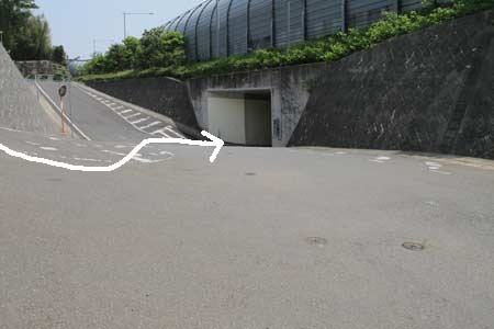 東名高速下のトンネルを抜けて鶴巻温泉街へ |