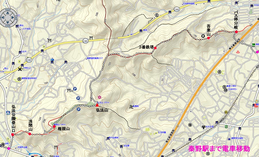 坪ノ内バス停分岐点〜鶴巻温泉駅MAP |
