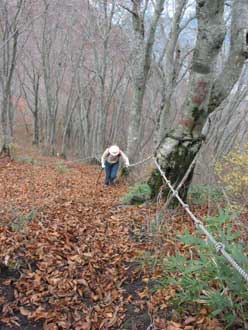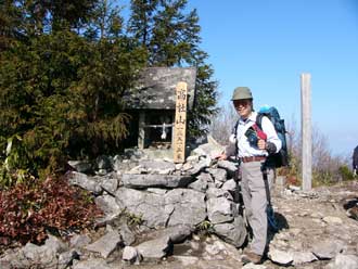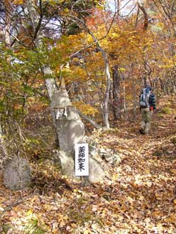 | ★ 2003.11.01 赤岩口(中野市・谷厳寺)発 9:00 〜 釈迦如来 9:08 〜 文殊観音 9:18 〜 天狗の飛び石 9:27 〜 地蔵菩薩 9:36 〜 薬師如来 9:44 〜 観音菩薩 9:50 (小休) 〜 勢至菩薩 10:12 〜 胴結場 10:22 (一杯清水もどきを往復) 〜 大日如来 10:40 〜 八幡神 10:57 〜 薬師岩・天狗岩 11:09 (大休) 〜 赤岩の御嶽(西峰) 11:35 〜 高社社山山頂着 11:44 (昼食) 高社山山頂発 12:50 〜 木の鳥居 12:58 〜 ゲレンデ最上部 13:02 〜 夜間瀬スキー場駐車場着 13:27 夜間瀬・遠見の湯で入浴して帰路につく。 ★ 2002.10.27 (途中棄権) 谷厳寺登山口発(赤岩口) 9:05 〜 地蔵菩薩 10:00 〜 三本松 10:37 〜 大日如来 11:12 〜 八幡神 11:30 〜 岩室 11:35 〜 西峰 12:00 〜 高社山山頂 12:10 (昼食) 高社山山頂発 13:10 〜夜間瀬スキー場ゲレンデ経由 〜 夜間瀬スキー場P着 14:10 夜間瀬・遠見の湯で入浴して帰路につく。 |
