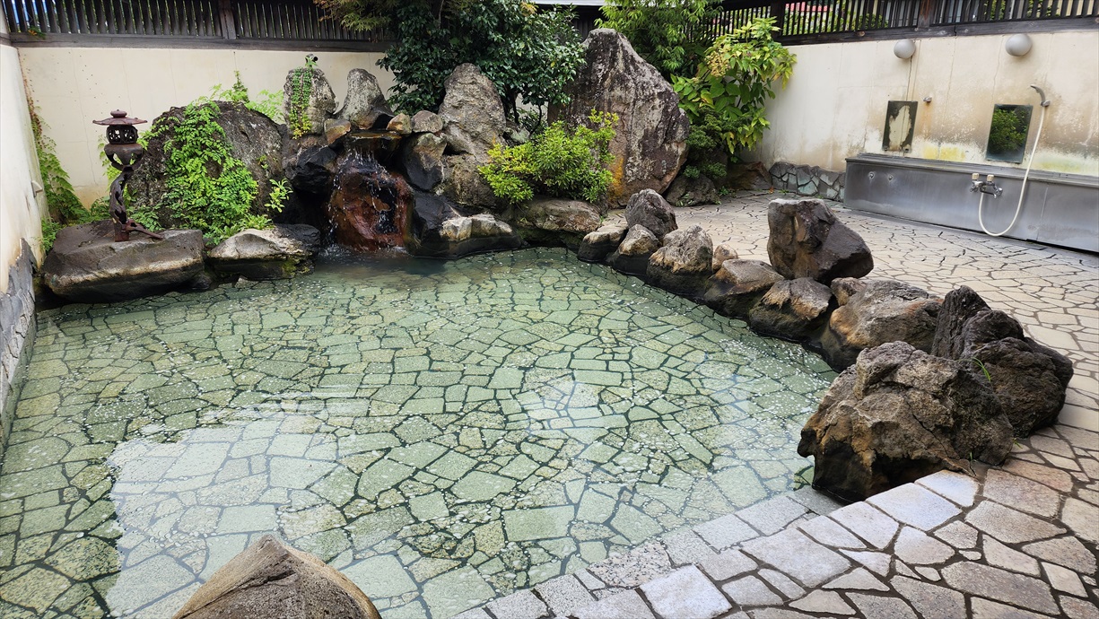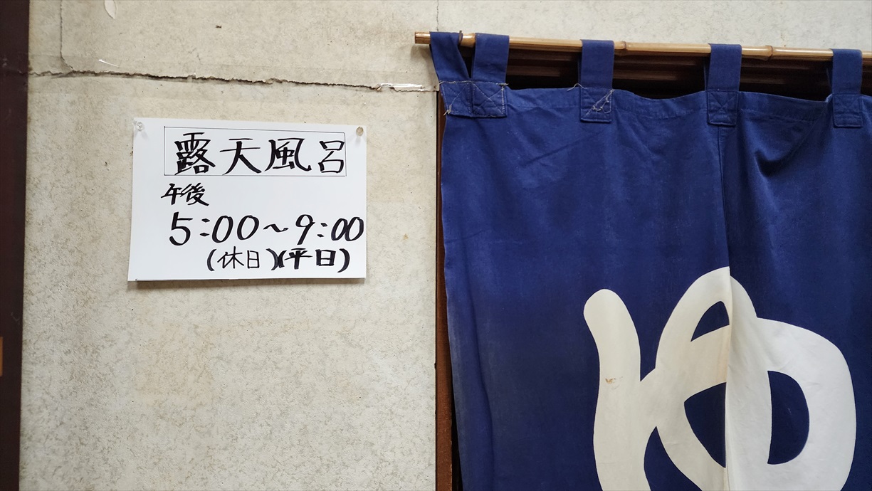 | 露天風呂は午後五時から入浴可 ただし雨天時は泉質保護のため入浴不可となるので注意 |