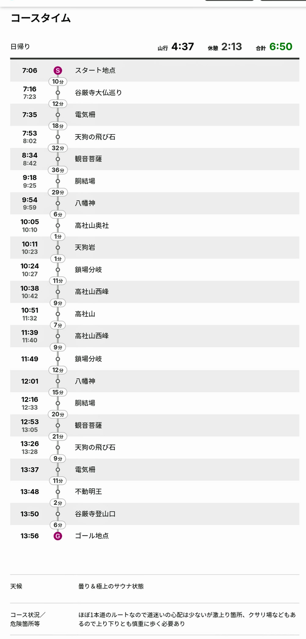 | 《高社山コースタイム他》 写真撮影時間20分〜100分含む |