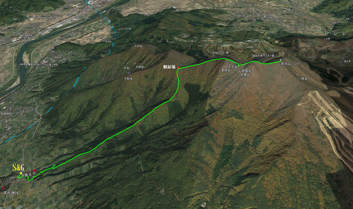 | 高社山赤岩ルート鳥瞰図 高社山ヤマレコ⇒https://www.yamareco.com/modules/yamareco/detail-7301799.html |