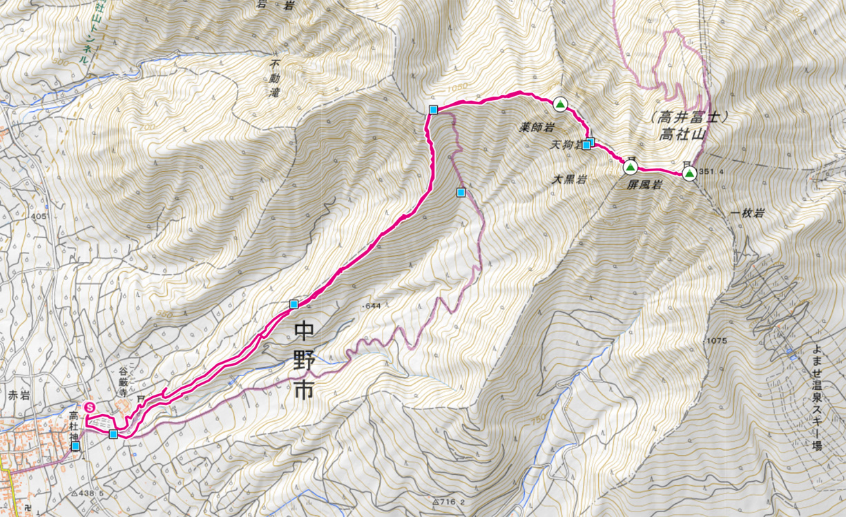 | 高社山ルート地図 (計曲線 50M 主曲線 10M) |