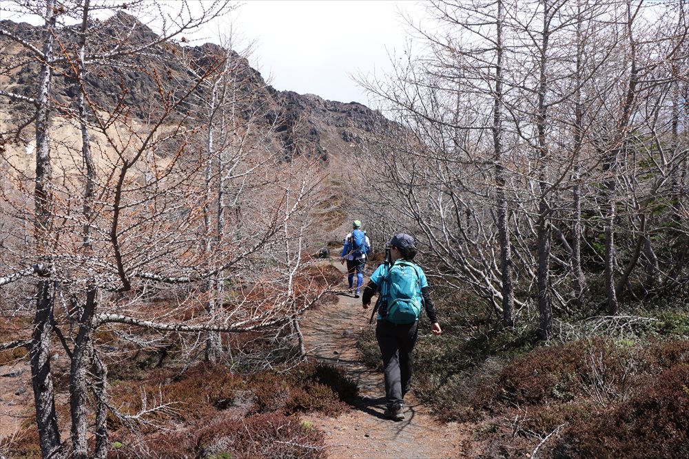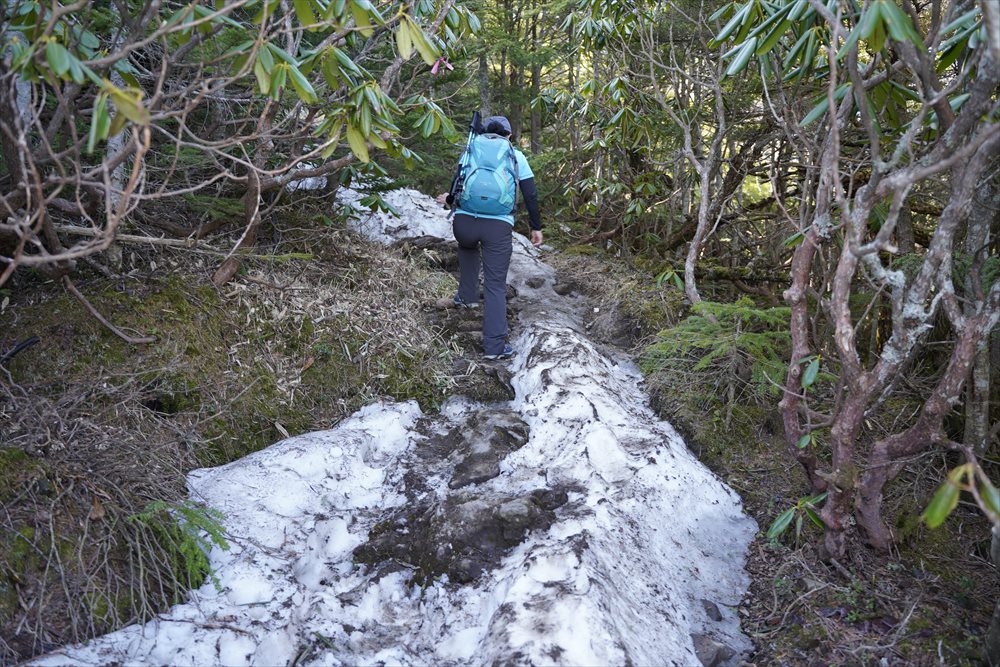 | 黒斑山へ 樹林帯は残雪がはんぱない! |