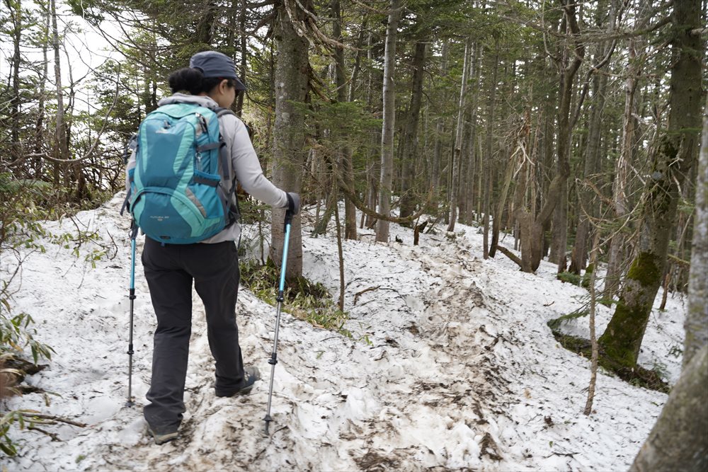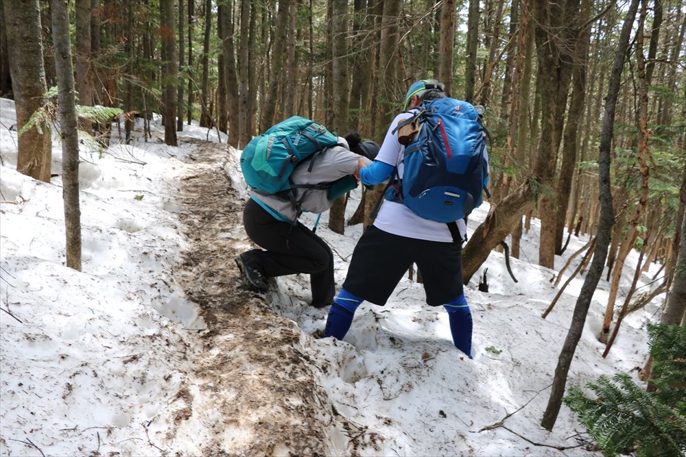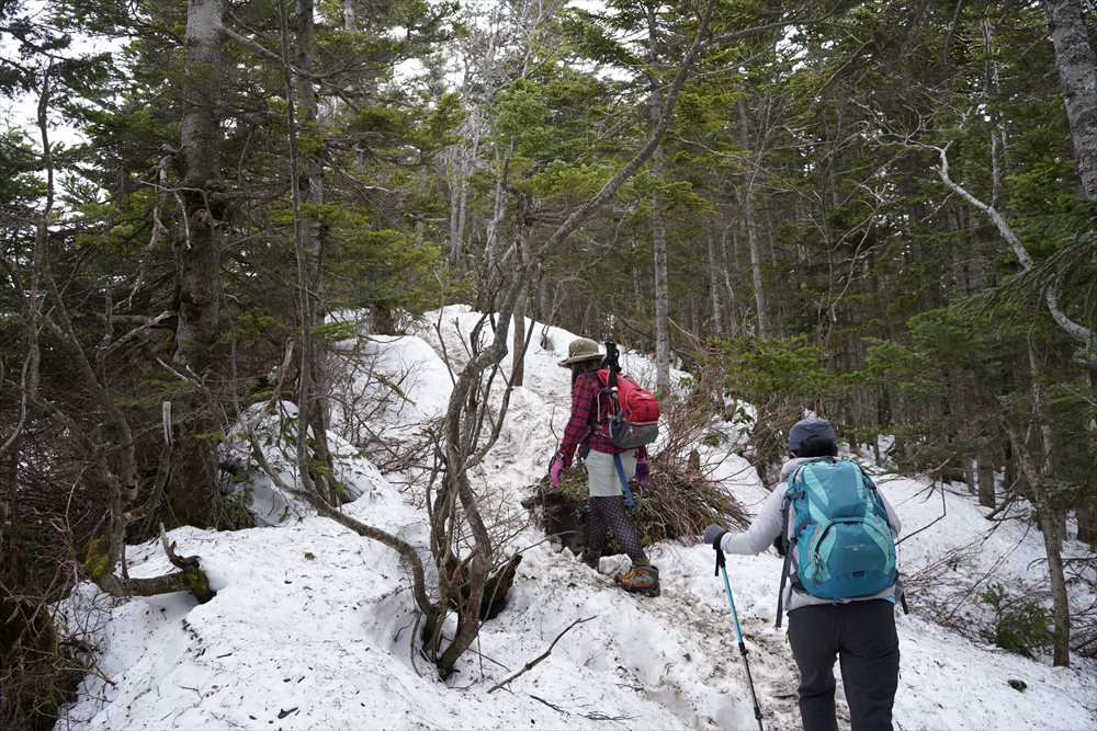 | 中コースは大半が樹林帯歩きのため残雪多いが斜度が緩いので転倒リスクは低い | ||||