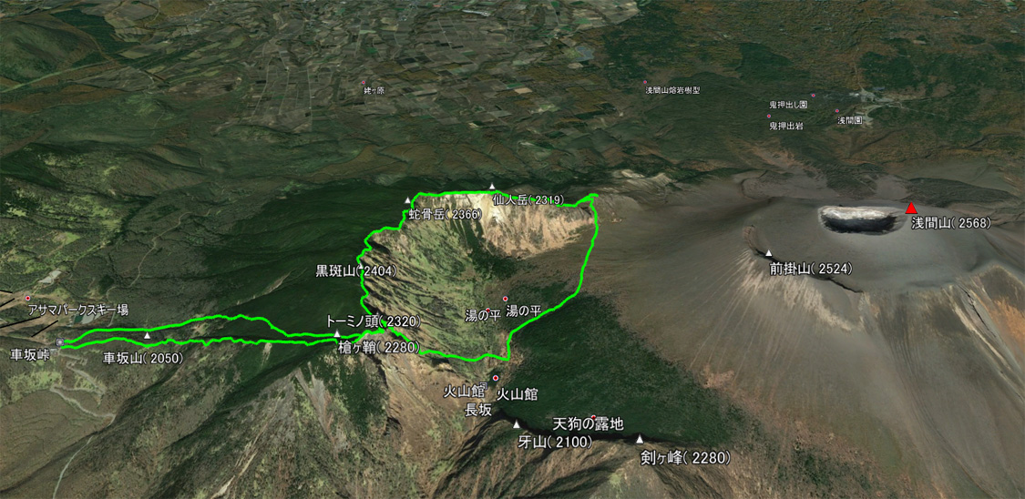 | 浅間山外輪山GPSデータ DL方法=地図画面→標高→マップ機能スクロール https://www.yamareco.com/modules/yamareco/detail-1857969.html |