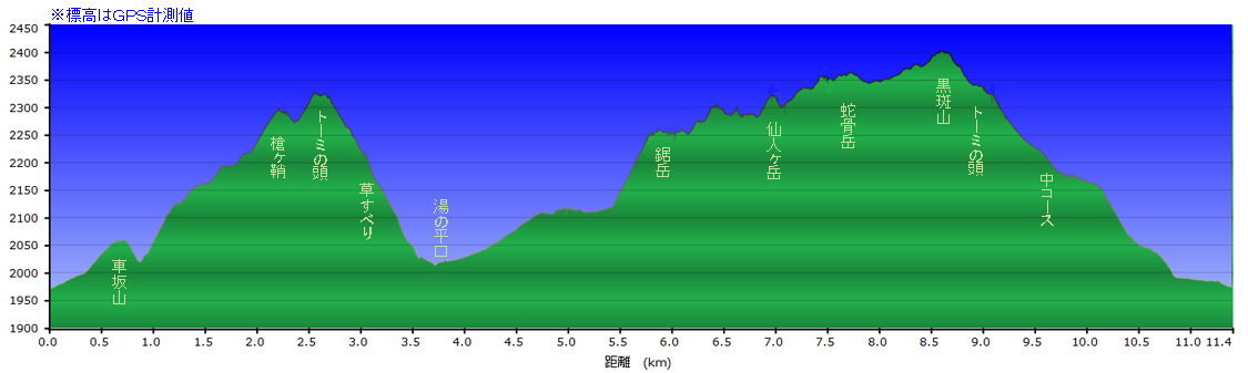 | 草すべり分岐点・湯の平まで0.9` | ||||