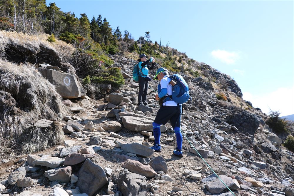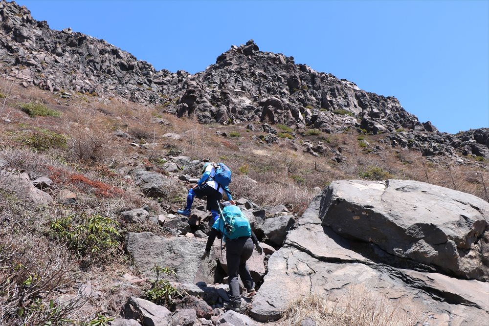 | 仙人岳へ 巻き道もあるけれどあえてスリリングなルートを選択 (^O^)v |