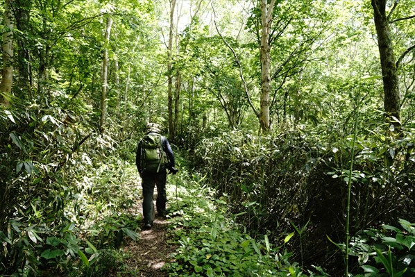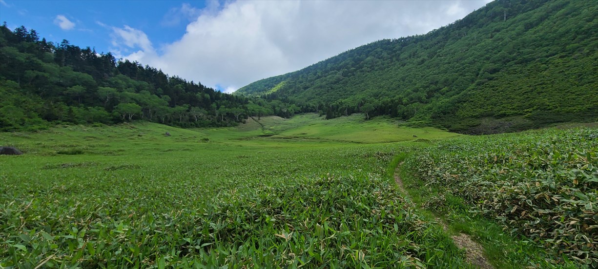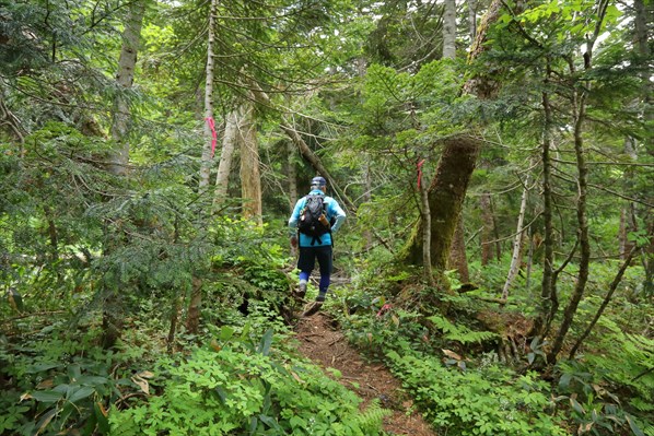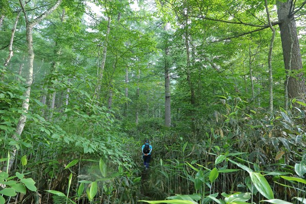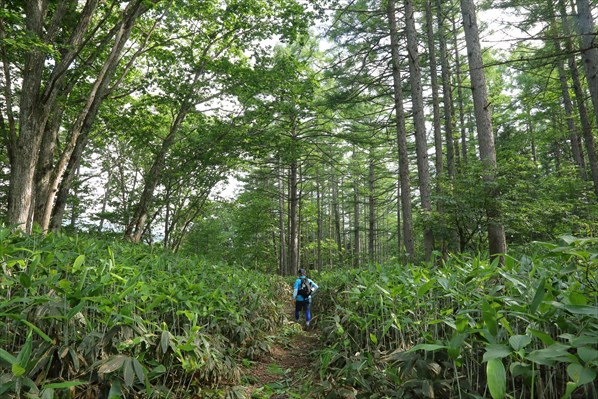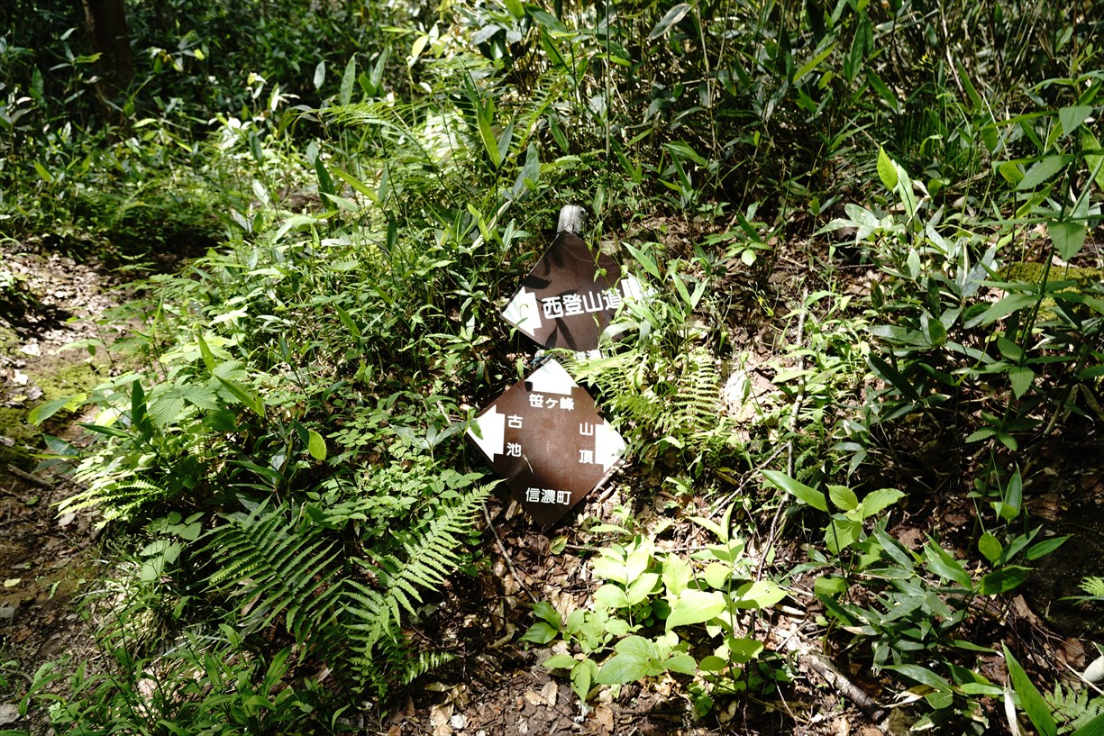 | 笹ヶ峰分岐点を通過すると穏やかな登山道になる | ||||