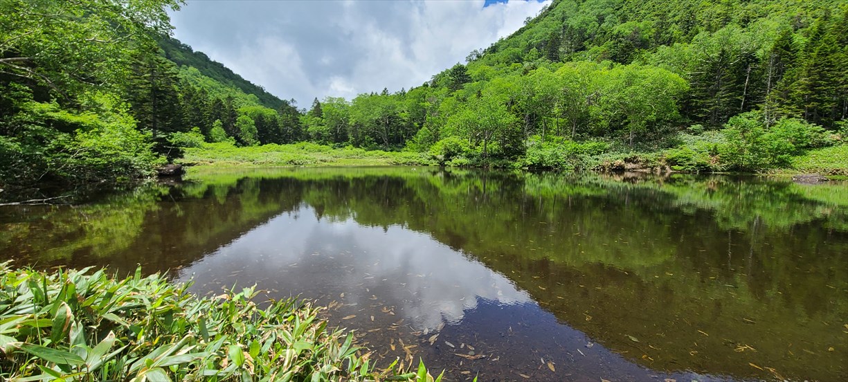 | 古池と黒姫山(雲の中だけどね) | ||||