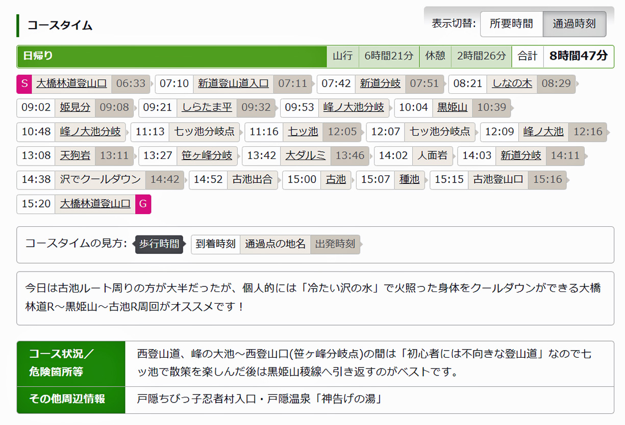 | 登山初心者の方を誘わない方が無難なコースです | ||||