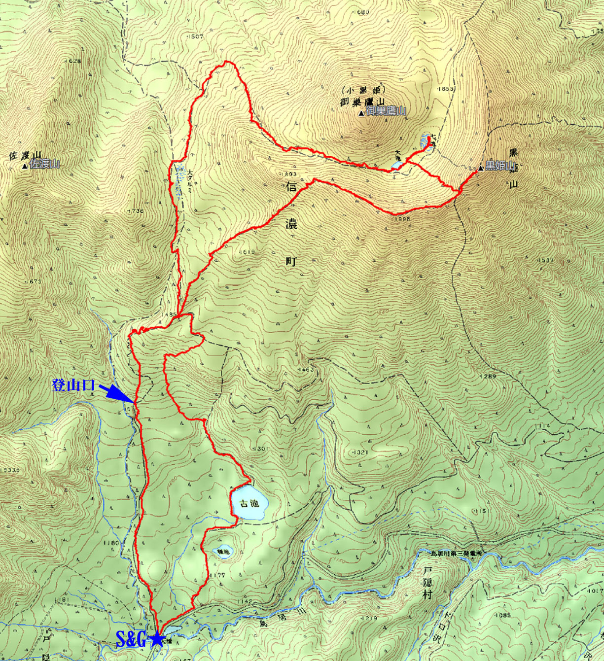 | 黒姫山ルート地図 (計曲線 50M 主曲線 10M) |