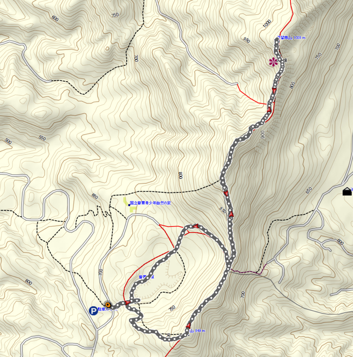 | 倶留尊山ルート地図 (計曲線 50M 主曲線 10M) |