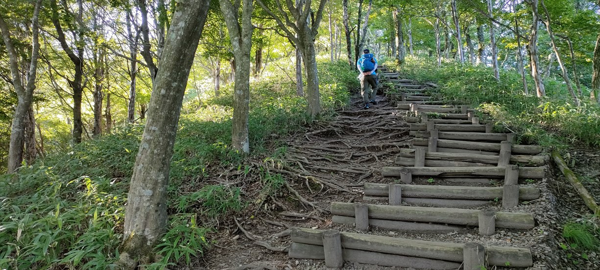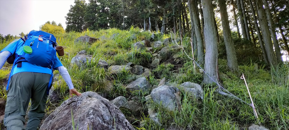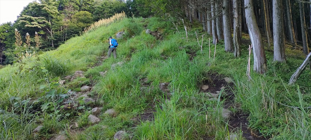 | 木段をつめればじきに倶留尊山分岐点になる | ||||