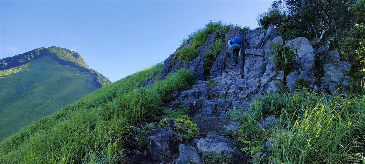 | 大きく下って登り返す(MAP参照) | シャクナゲ地帯 | |||