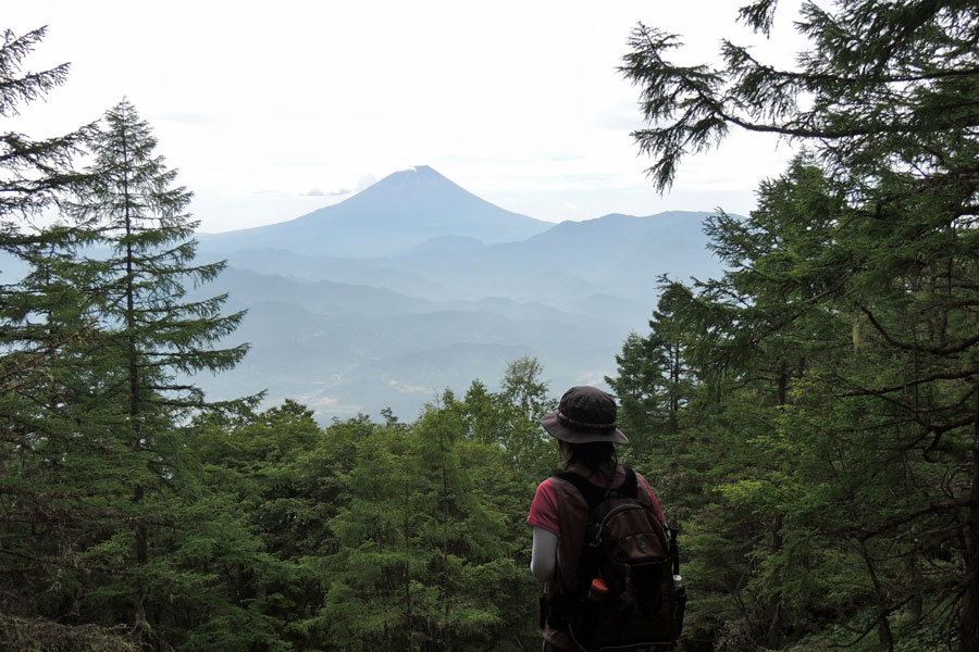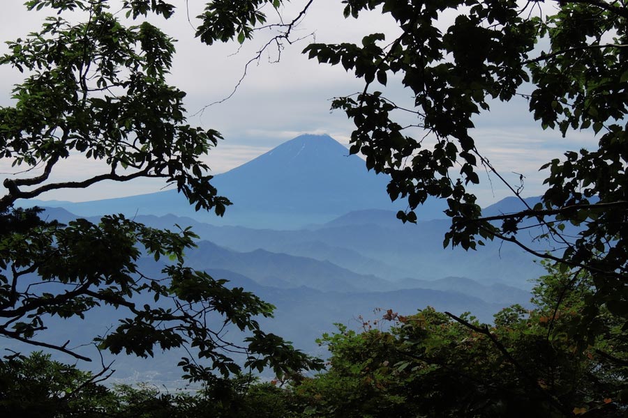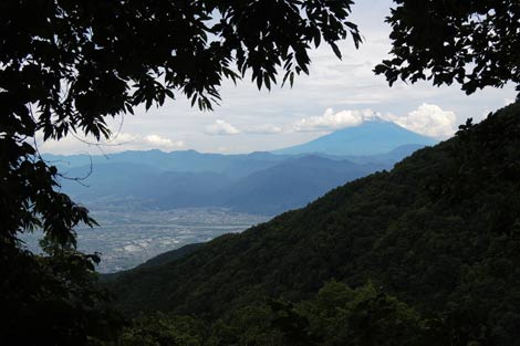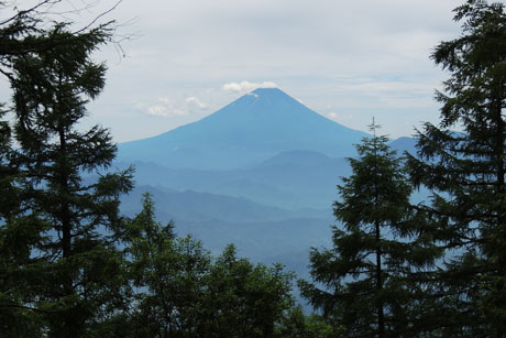 全く展望の無い樹林帯歩きだったが当ルート唯一の富士山展望地/下段MAP参照 |