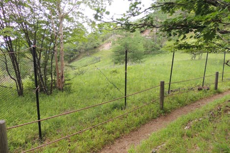 鳥獣除けフェンスが広範囲に設置されている |