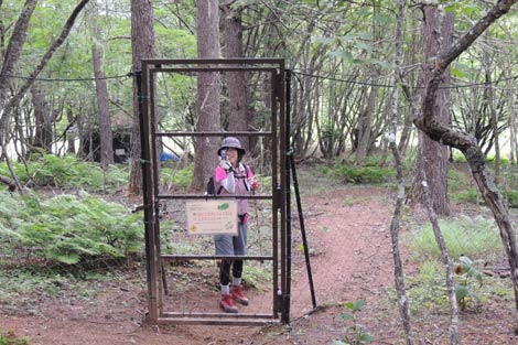 アヤメ平南端のフェンスを抜けて北尾根登山道へ |