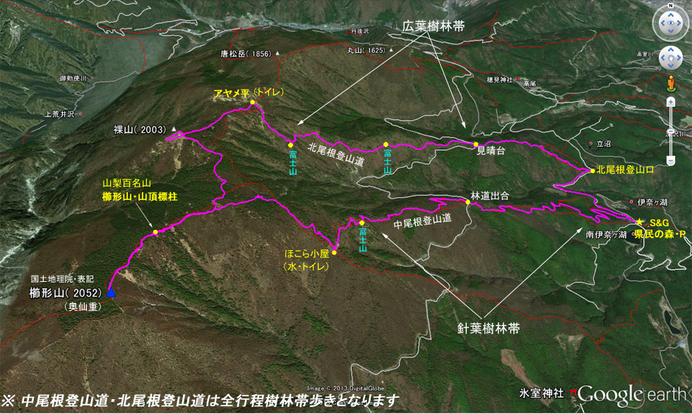 櫛形山〜裸山登山MAP