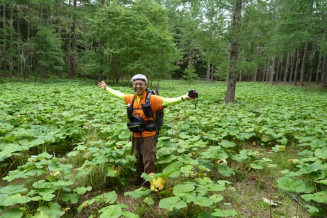 開花はこれからだが「マルバダケフキ」の大群生地 |