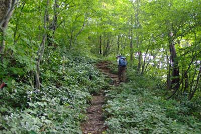 | 櫛形山脈の稜線に出る 左/鳥坂山 右/櫛形山 | 櫛形山への急坂 | |||