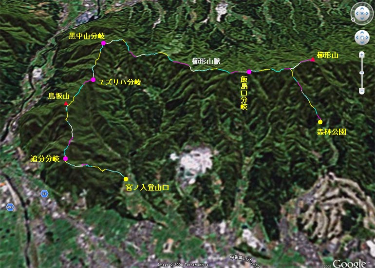 | @関沢森林公園 A山の神R登山口 B山の神 C大沢駐車場分岐点 D市ノ沢城跡分岐点 E市ノ沢R分岐 F櫛形山 G飯角口・いいずみ分岐点 H胎内スキー場方面展望良 I板入峰 J黒中山分岐点 Kユズリハノ峰 L鳥坂山・とっさかやま&胎内観音R分岐点 Mマイクロウェーブ N追分(白鳥公園)R分岐点 O白鳥R分岐点 P宮ノ入R登山口 |