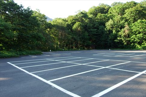 | キョロロ物産館有料駐車場/トイレあり 登山者より青池観光客の車で賑わう |