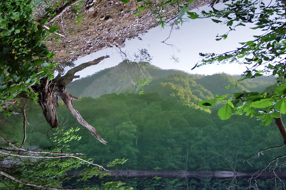 | 鶏頭場ノ池に映る「逆さ大崩れ」 | ||||