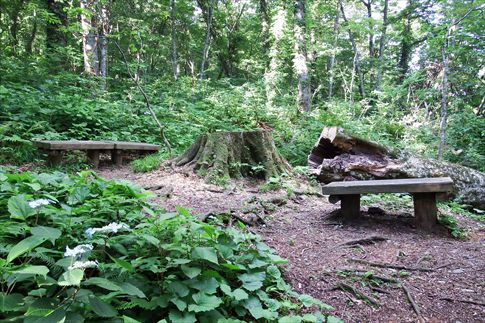| 山頂ベンチ この山頂で座禅草が咲くなんて普通は考えられない事だけれど・・・ |