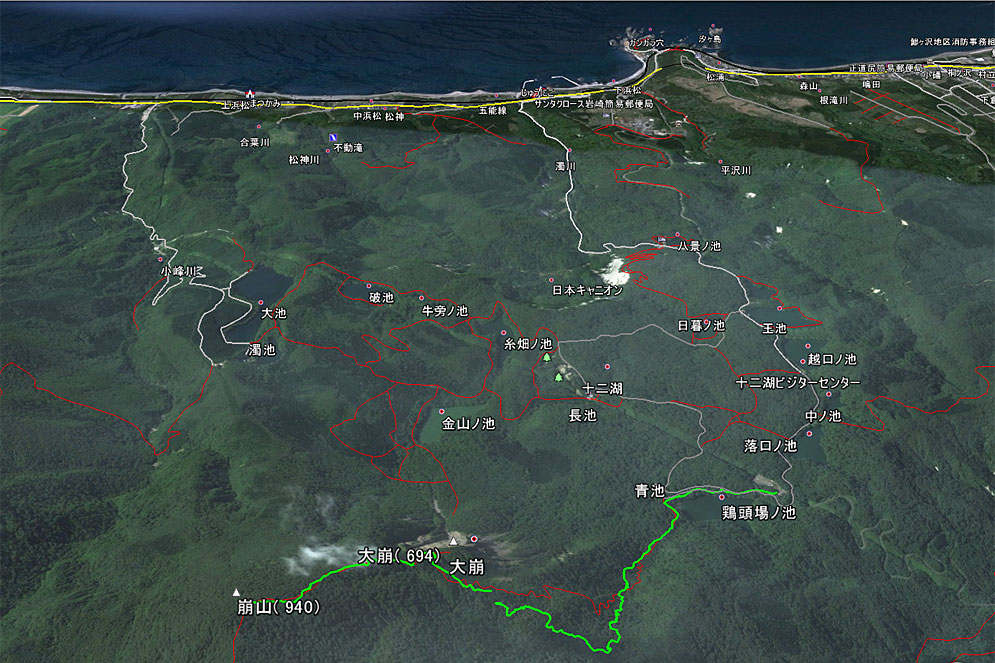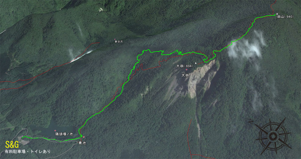 | 左/崩山 右/青池 | 崩山登山口 | |||