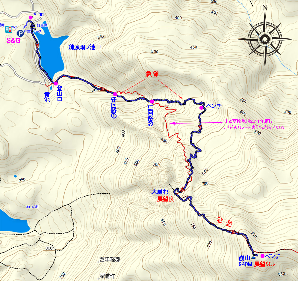 | 崩山ルートMAP (計曲線 50M 主曲線 10M) |
