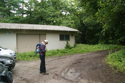 | 生坂小学校横の京ヶ倉登山口案内板 | 林産集落振興対策事業の作業用建物 3台程駐車可 |