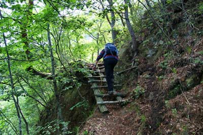 | 木製はしご 稜線出合まで4箇所のはしご場あり |