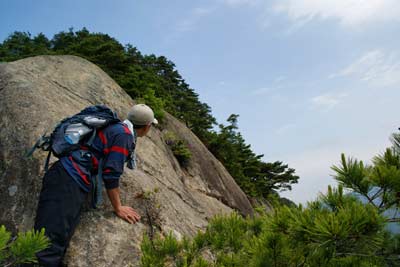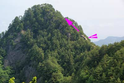 | 目指す京ヶ倉 | とどの背岩を巻いて岩稜部を登り込む | |||