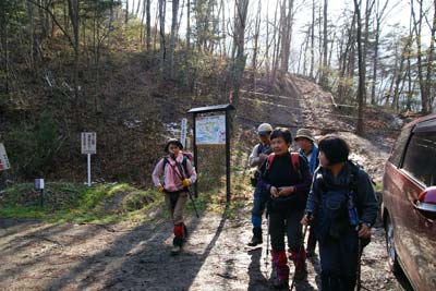 | こや城登山口で自己紹介 | 岐阜隊6名・長野隊4名の大人数で出発 | |||