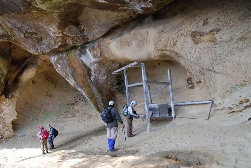 | ガンゲ(洞窟まで30分)で休憩中/この辺りからクサリ場が連続する | ||||