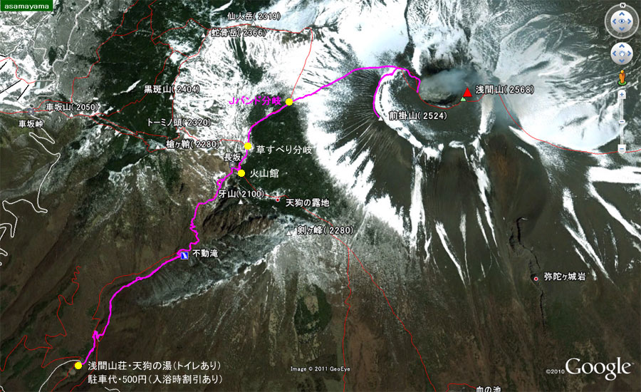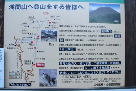浅間山荘・天狗温泉駐車場(500円)の登山口 |