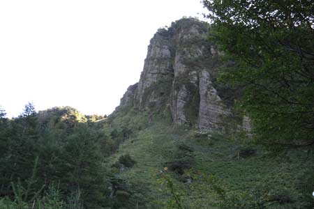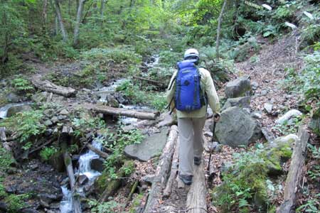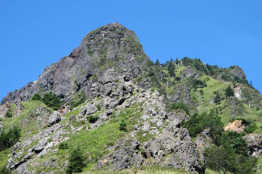 トーミの頭(登山者が見える) 右奥は黒斑山/地獄谷風ミニキャニオンより |