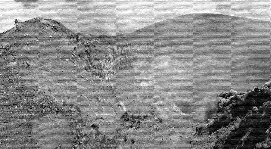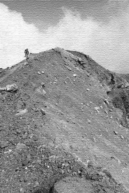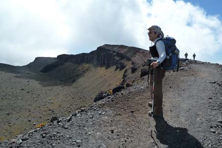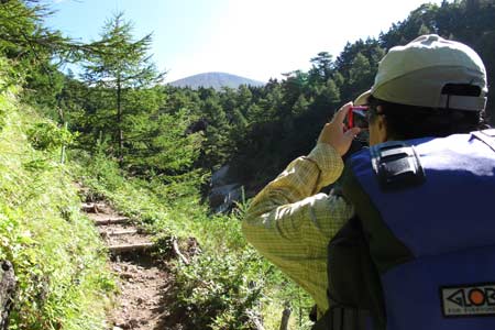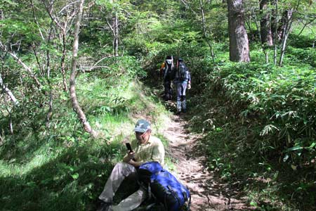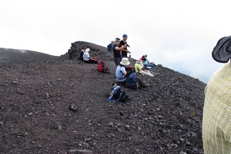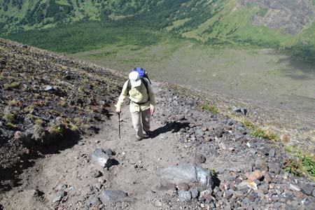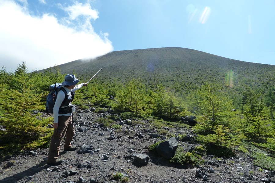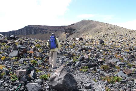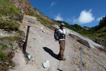 登山者の八割方が火口縁へ登って行くのを見て思案中の管理人・・・(笑)