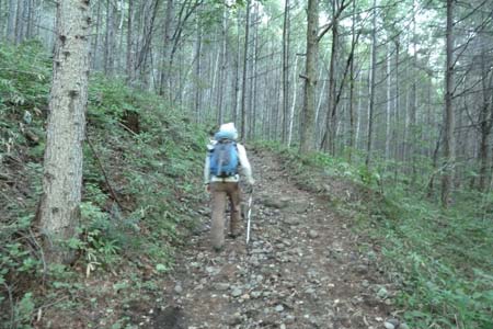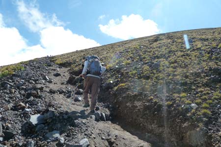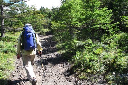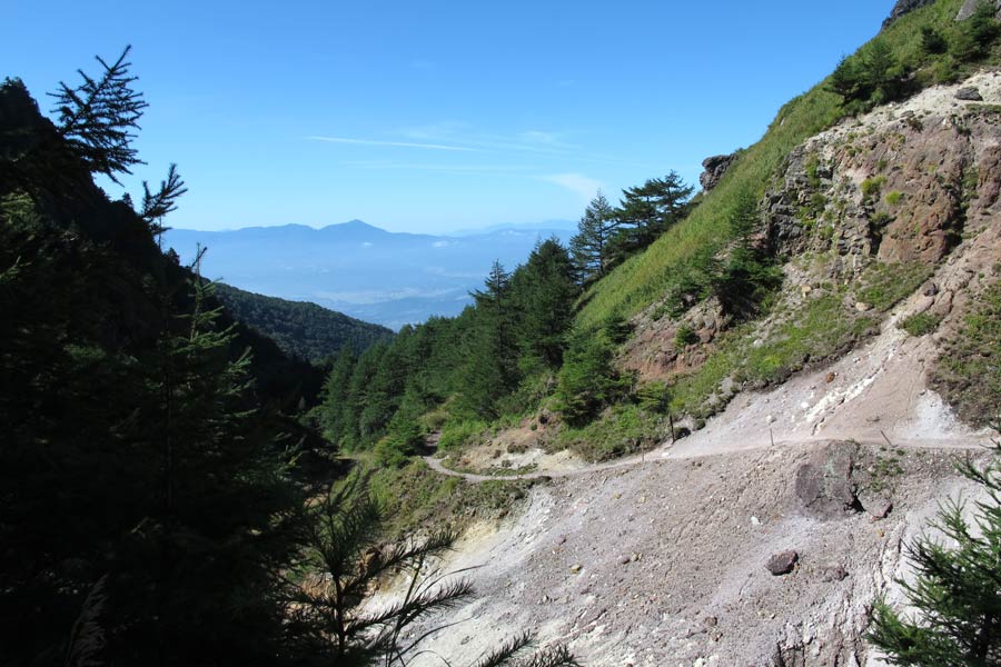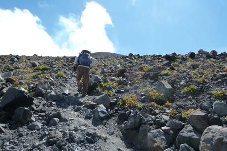 草すべり分岐を過ぎると活火山特有のザレ道となる |