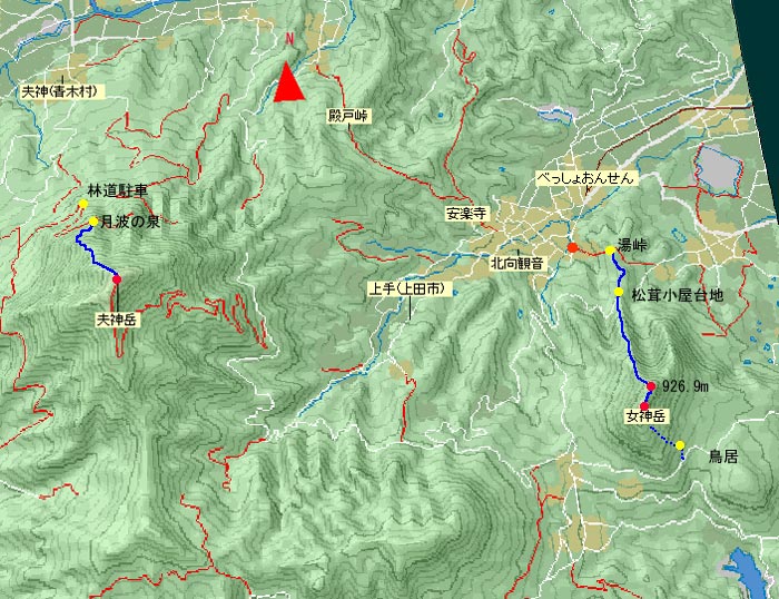 別所温泉無料P発 9:20 〜 松茸小屋 9:39 〜 女神岳山頂 10:45 (小休)