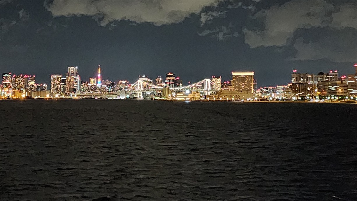 | この夜景をみたくて深夜発の大型船にしました(^O^)v 次回伊豆大島再訪時は熱海港か伊東港から高速船利用になるかも |