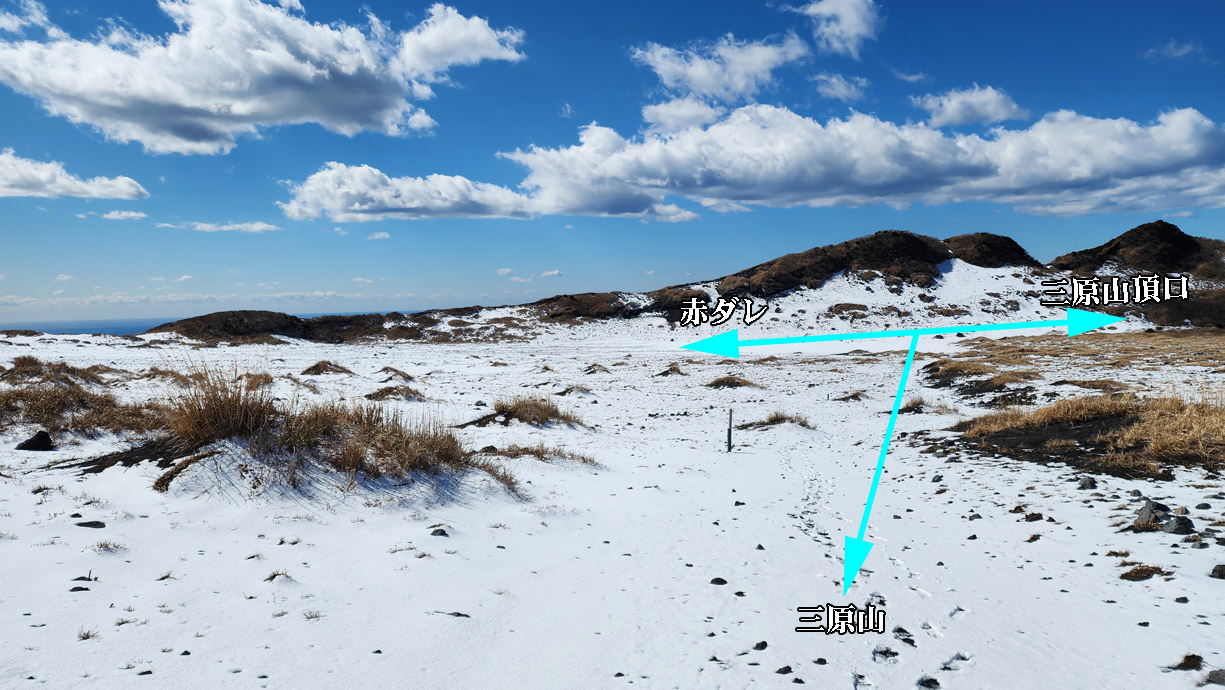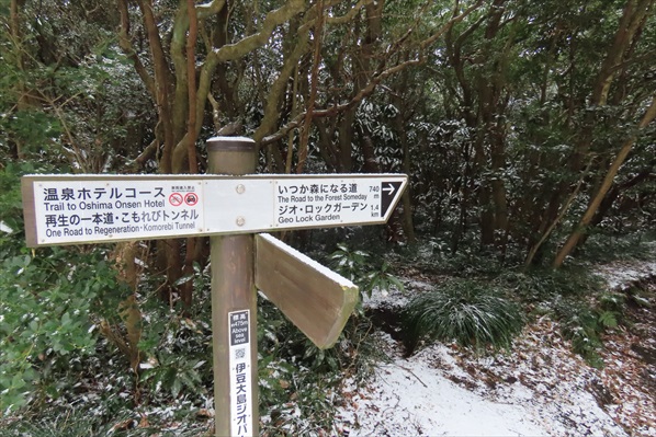 | 大島温泉ホテルコース火口分岐点 三原神社経由で表砂漠コース分岐点へ向かう |
