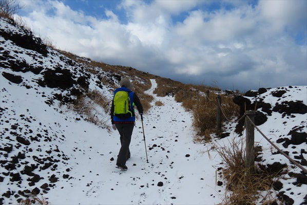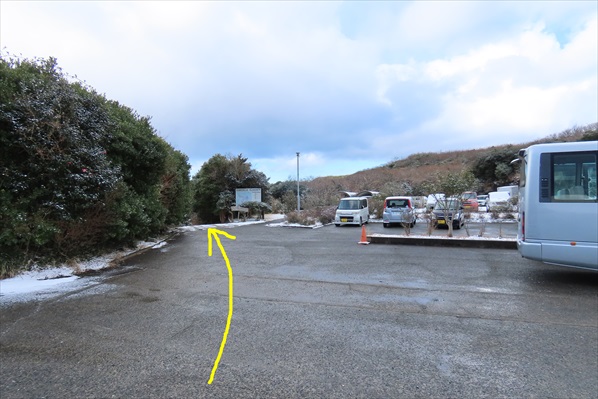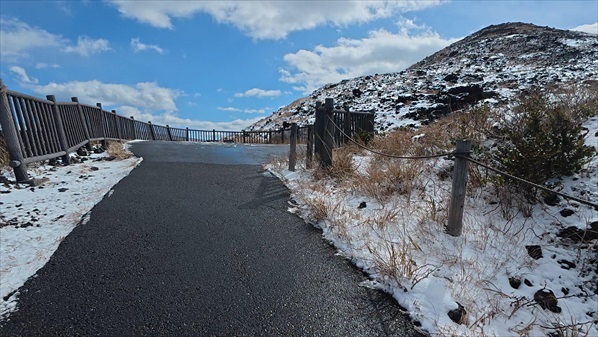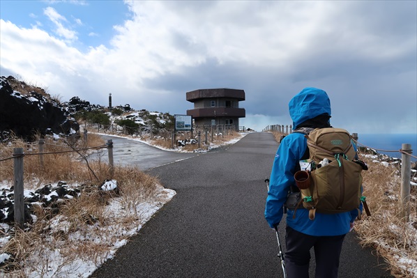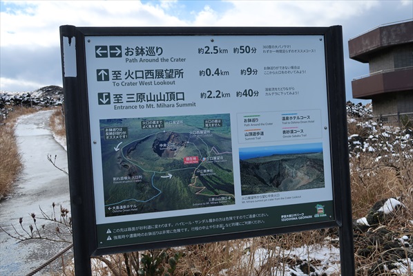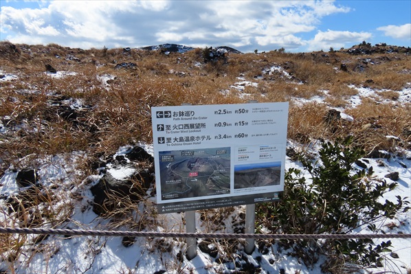 | 火口西展望所へ向かいます 前方の建物は展望台兼用トイレ |