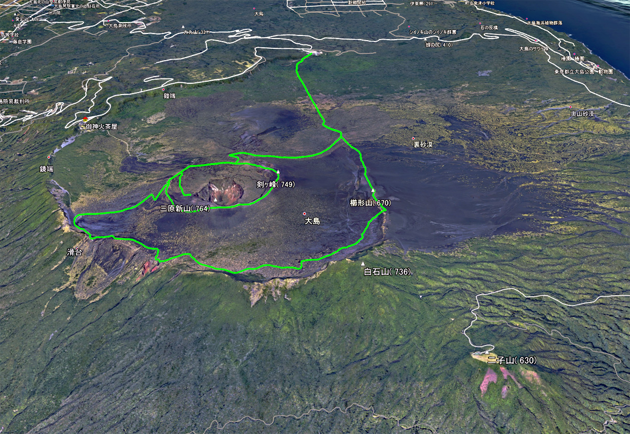 | 伊豆大島・三原山鳥瞰図 ヤマレコ⇒https://www.yamareco.com/modules/yamareco/detail-7825119.html |