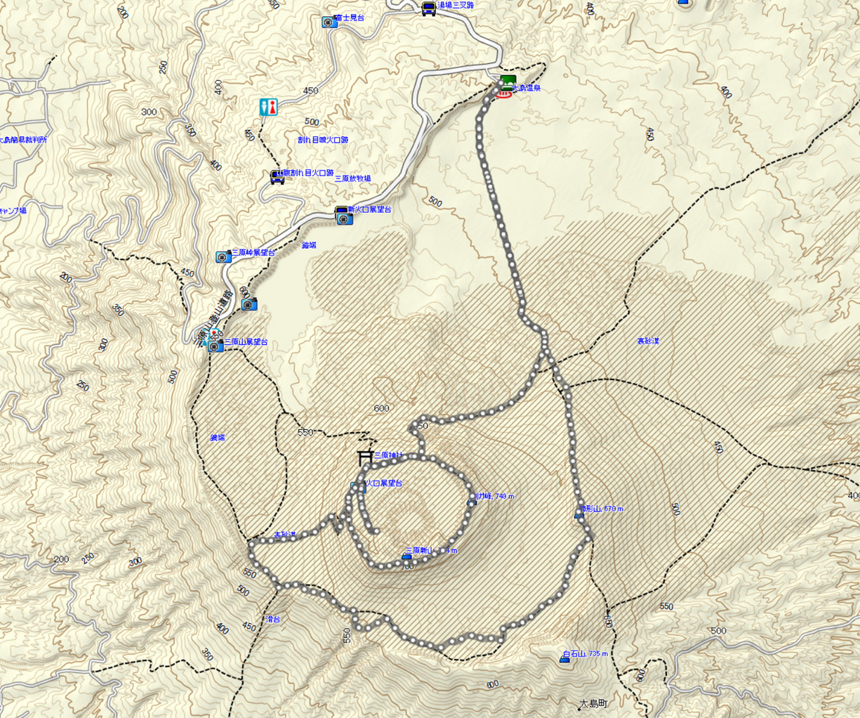 | 三原山ルート地図 (計曲線 50M 主曲線 10M) |