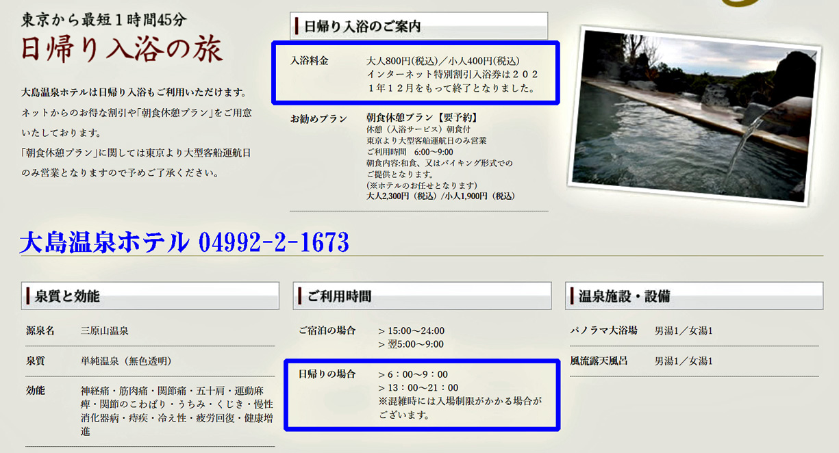 2/20(木) トヨタレンタカーで観光 大島温泉ホテル宿泊で割り引きあり・車返却時 岡田港へ無料送迎あり |