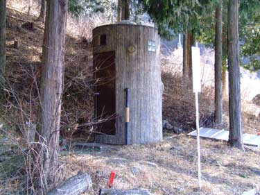 | 南登山口駐車場から見る西御荷鉾山 | 景色にとけ込んで洒落た簡易トイレ | |||