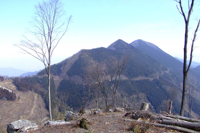 | ここから急坂を一気に降りる | 東御荷鉾山がみえる | |||