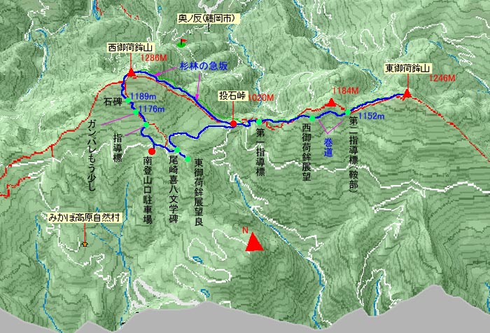 | 投石峠から御荷鉾スーパー林道を歩いて南登山口へ | ||||